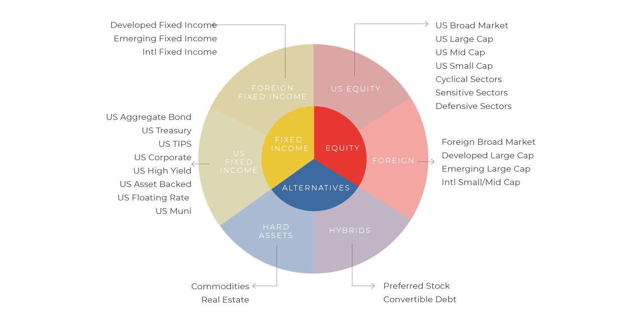 Many portfolios remain limited to a mix of common investments, such as stocks, bonds, and cash. Our portfolios are not bound by a traditional definition of diversification, and draw from an extraordinarily wide selection of asset types. This is similar to the diversification employed by major institutions and includes often-overlooked specialized investments. Our goal is to maximize the accessibility of return opportunities across a broad range of investment areas and changing market conditions. Further, this helps us strive for consistency of returns without unnecessary dependence on a single market area.